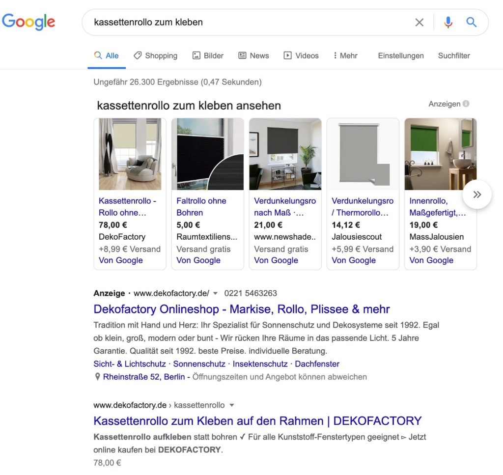 Außerdem unterscheidet man SEO in OnPage- und OffPage-Optimierung, also die Optimierung auf der Website selbst und außerhalb der Website. Eine gängige Methode ist außerdem Local SEO, die darauf abzielt, eine Website in den lokalen Suchergebnissen nach vorne zu bringen. Ein Beispiel einer lokalen Suchanfrage wäre „Jalousien Berlin“. Das Konzept an sich ist sicher bekannt: Nahm man früher ein Telefonbuch in die Hand, öffnet man heute den Browser.