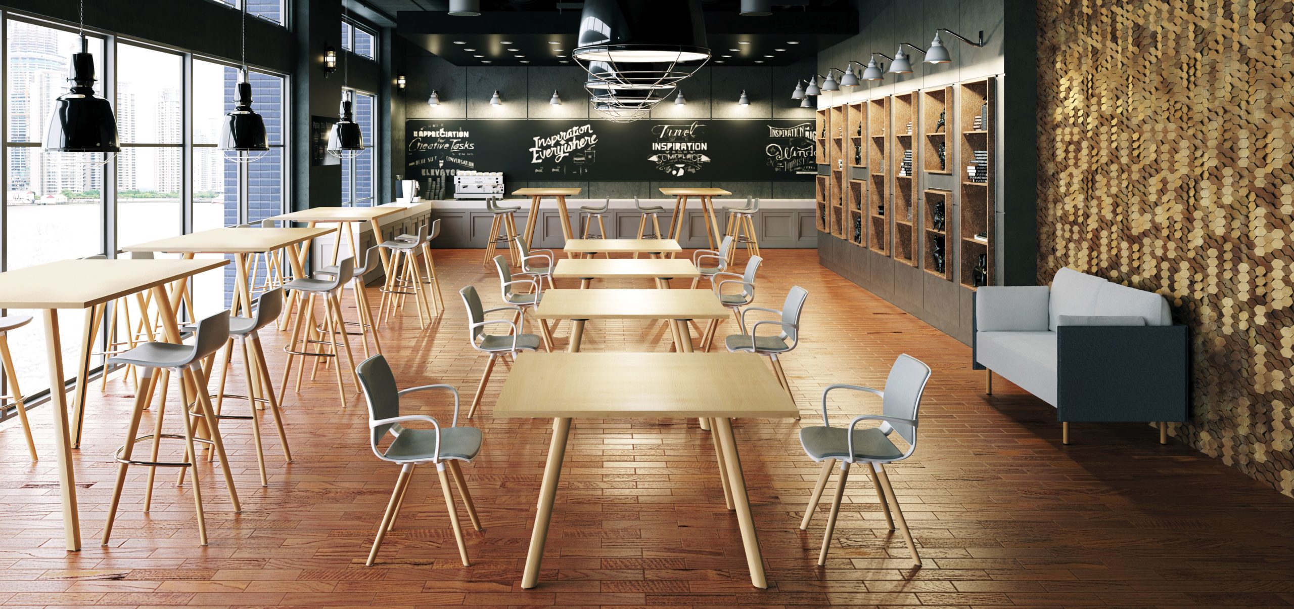 Sven Bublitz: Unternehmen merken, dass man für 400 Mitarbeiter nicht 400 Schreibtische braucht. Das war auch vorher schon Thema, hat sich jedoch deutlich verstärkt. Und jeder hat mittlerweile selbst erlebt, dass Videokonferenzen viel Reisezeit und Aufwand sparen. Ein Beispiel aus unserer täglichen Arbeit: wir stellen auf Wunsch unserer Kunden die Zwischenschritte einer Büroplanung so gut wie immer online via Microsoft Teams vor. Sobald es dann an Materialien geht, die man fühlen möchte, trifft man sich bei uns im Showroom oder vor Ort beim Kunden. Hierfür wird es auch in Zukunft spannende Orte brauchen, wo entsprechende Technik (großer Screen, Beamer, Lademöglichkeiten, etc.) vorhanden ist, um z.B. einer Gruppe in nettem Ambiente etwas zu präsentieren oder Ideen zu diskutieren.