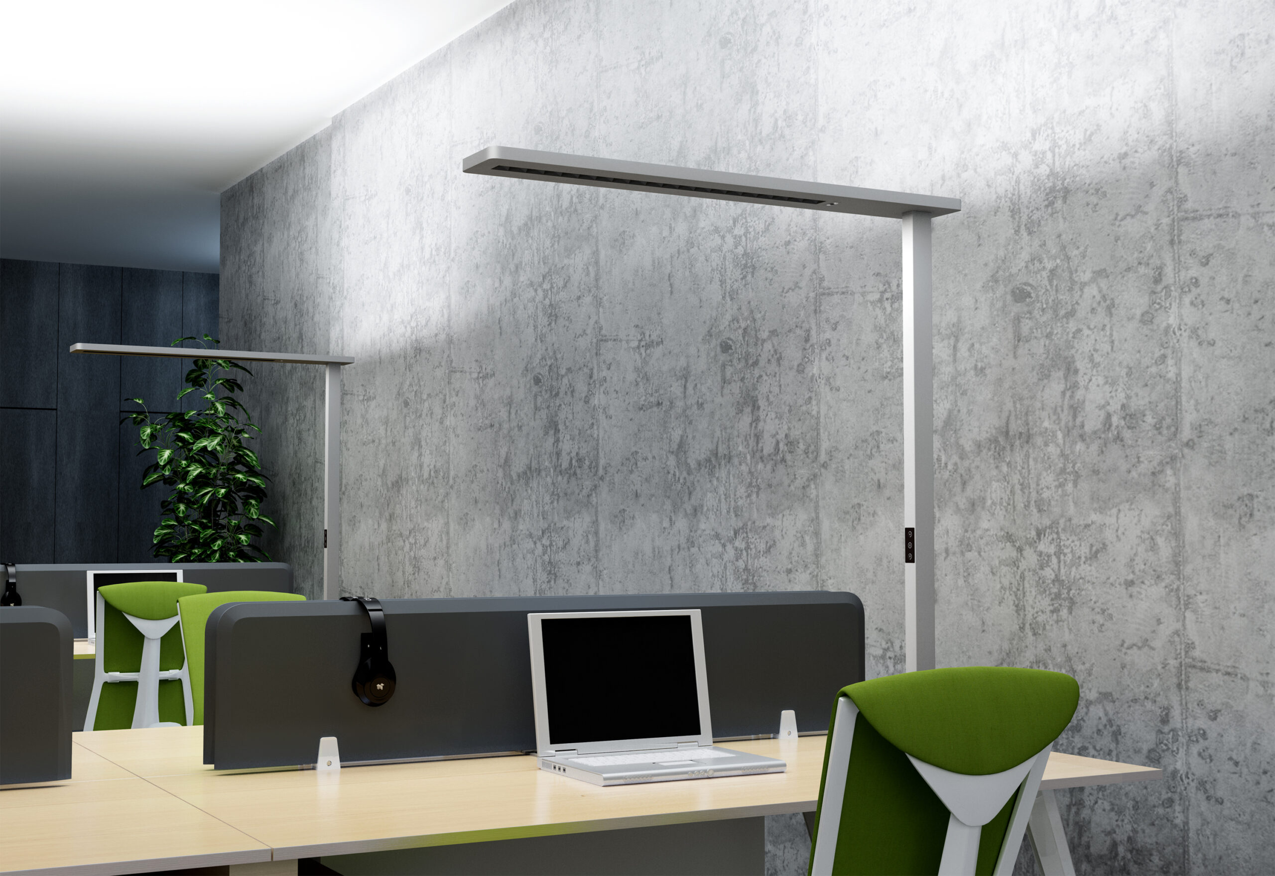 - Flexibilität der Platzierung: Stehleuchten sind direkt an den Arbeitsplätzen positioniert und ermöglichen eine einfache Veränderung der Platzierung je nach Bedarf.
