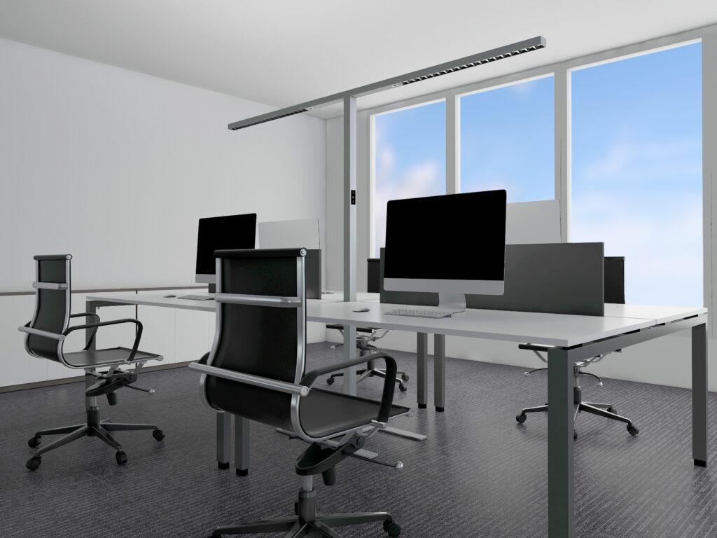 - Flexibilität der Platzierung: Stehleuchten sind direkt an den Arbeitsplätzen positioniert und ermöglichen eine einfache Veränderung der Platzierung je nach Bedarf.